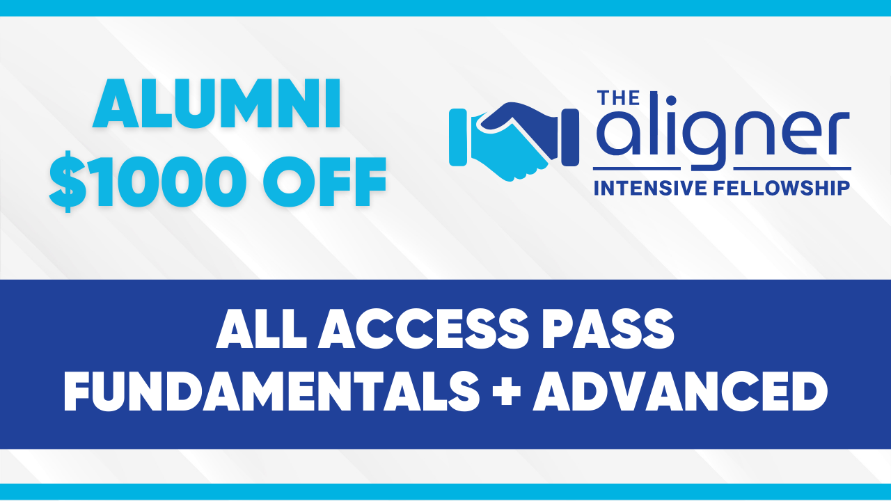 - Complimentary Access to Aligner Implementation Management Course presented by high-volume aligner orthodontist Dr. Regina Blevins ($2850 Value)